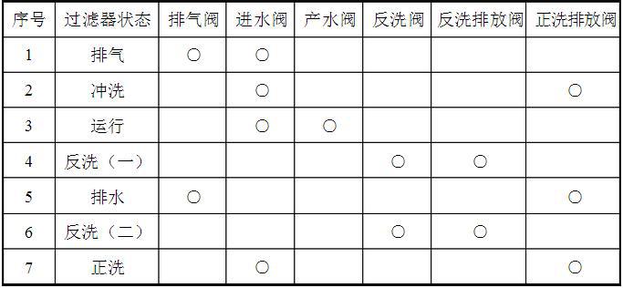 打開過濾器進(jìn)水閥、排氣閥,待水充滿設(shè)備時關(guān)閉排 氣閥,打開出水閥。當(dāng)運(yùn)行至進(jìn)出口壓差≥0.05~0.07Mpa 時,運(yùn)行周期結(jié)束,設(shè)備需反洗。